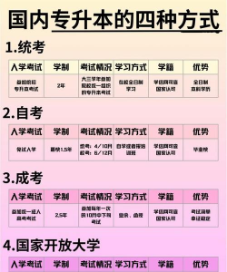 提升专科学历的常见途径可分为以下四种方式,供不同需求和条件的人群选择: