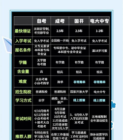 - 需参加全国统一入学考试(语文、数学、英语),学制2.5-3年,适合在职人员或时间灵活的考生。