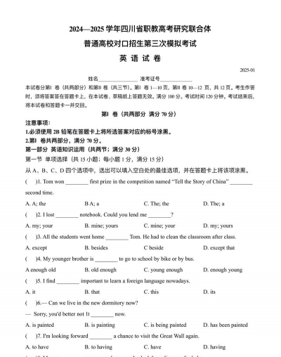 对口外语考试是一种针对特定职业或行业需求,评估非英语母语者英语应用能力的标准化考试。这类考试通常由教育机构或行业协会组织,内容涵盖语言知识、应用技能及实际场景模拟,旨在帮助考生证明其具备从事相关职业所需的英语水平。