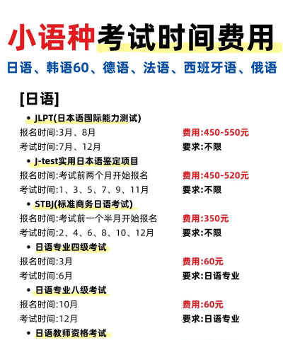 外语考试的费用因考试类型、级别和地区而异,以下是常见外语考试的费用标准及缴费说明: