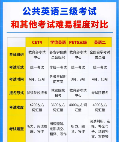 - 部分资料认为其难度介于高考英语和英语四级之间,属于 三级半水平。