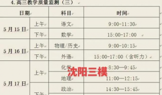 很抱歉,目前无法提供2025年沈阳三模外语考试的具体时间表。根据现有信息,2023年沈阳三模考试时间安排如下: