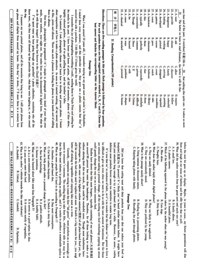 - 阅读理解(30分):含15篇短文,考查阅读理解能力,题型包括词汇语法题、完形填空等。