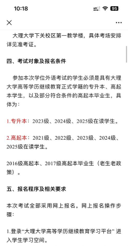 3. 考试对象需为大理大学成人高等教育正式学籍的专升本、高起本学生及毕业生