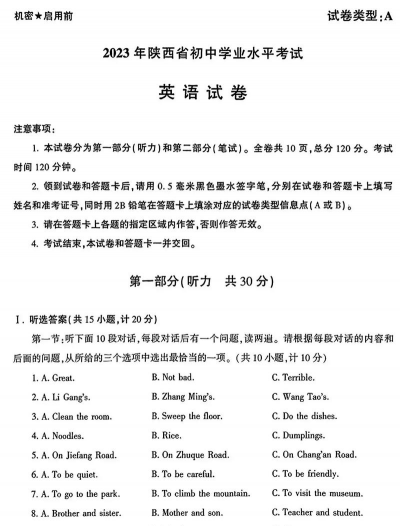 二、中考外语考试内容(以英语为例)