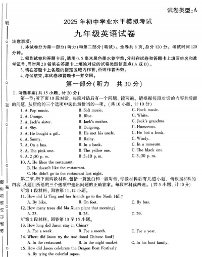 - 听力: 20分钟,30道选择题,涵盖阅读理解、语法判断等。 - 选择题