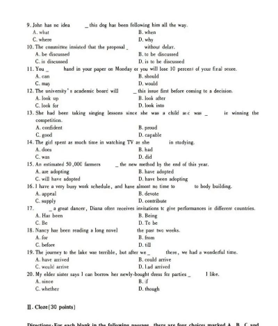 - 阅读理解: 占比约40%,考查理解文章大意、细节判断及推理能力; - 完形填空