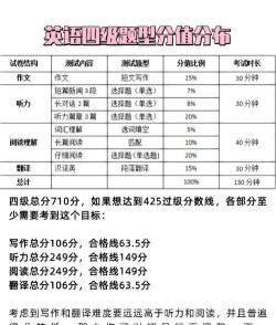 - 满分710分,不设及格线,但 425分及以上可报考六级。