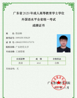学士学位外语考试成绩单