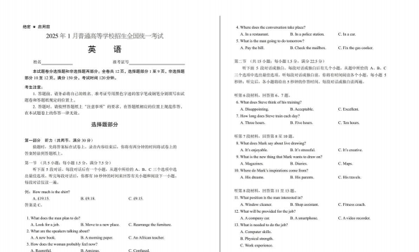 春季高考 2025年春季考试与1月4日、5日的语文、数学考试同步进行,外语考试于1月6日(周一)上午9:00-11:30开展。