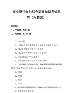 涵盖银行法律法规、业务操作(如存款贷款、结算)、风险管理、信息技术等。