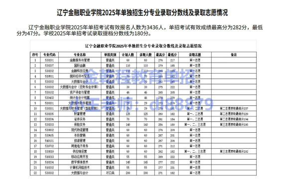 关于辽宁金融职业学院单招分数线,综合近年数据信息整理如下: