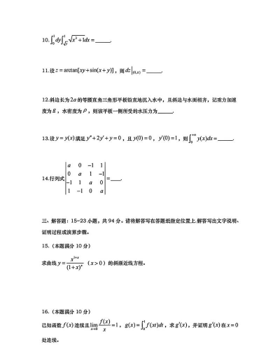 金融考研数学二考试范围主要涵盖高等数学和线性代数两部分,具体内容如下: