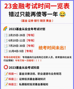 根据搜索结果,2025年金融从业考试时间安排如下:
