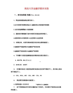 大学金融学期末考试科目因学校、专业层次和课程设置差异较大,但通常包含以下核心内容模块: