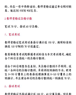 全国统一标准 教师资格证笔试合格线由教育部考试中心根据考试难度和考生整体水平确定, 合格分数线为卷面分数的70%