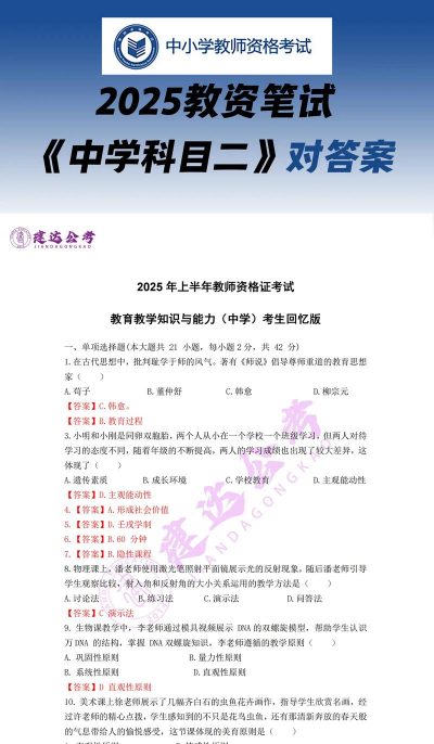 - 相比小学教师考试,初中科目三的专业知识要求稍低,但学科知识覆盖面更广。