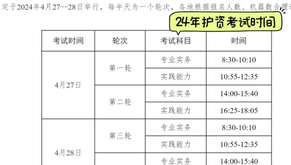 亳州护师资格考试时间表