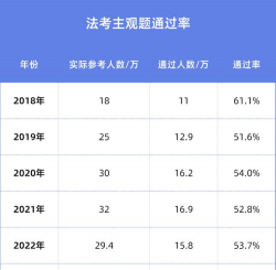 - 2021年后,主观题考试内容调整,通过率有所提升,但整体难度仍较高。