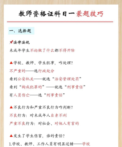内容特点 考试内容涵盖教育法律法规、教师职业道德、教育观、学生观、教师观等基础理论知识,题型包括选择题、材料分析题和写作题。其中作文写作部分分值较高,被视为"得作文者得考试"。