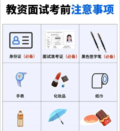 参加教师资格考试需要携带以下必备物品,具体要求如下:
