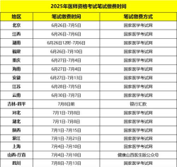 2025年医学综合笔试网上缴费时间为 6月25日10:00-7月25日24时,逾期未缴费视为放弃考试资格;