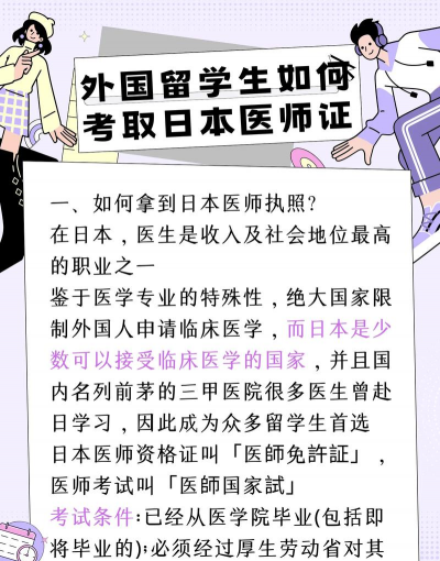 日本医师资格考试流程严格,需通过多轮考试并完成实习,且对语言和临床能力要求较高。建议考生提前规划时间,充分准备。