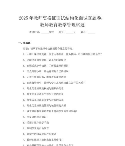 - 材料分析题:分析教学案例,提出改进措施(约30%)。
