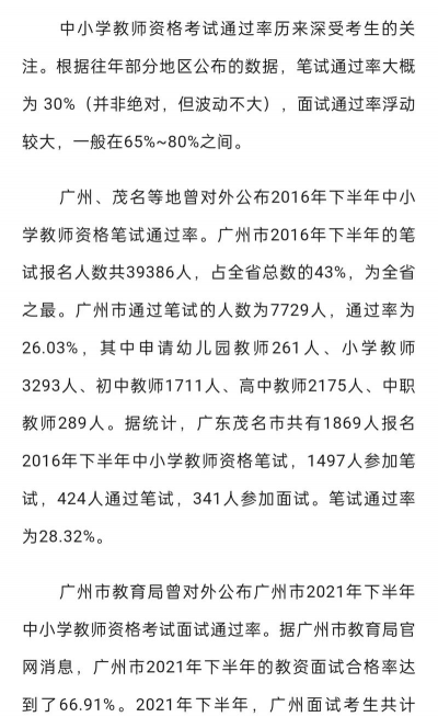 笔试通过率 教师资格证笔试通过率整体集中在 30%-40%