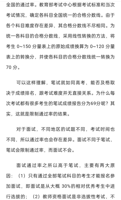 笔试合格分数线由教育部考试中心统一划定,具体分数因科目和年份有所调整,但通过率约30%的规律性较强;