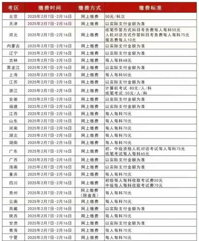 - 安徽:61元/科(含国家考务费11元)