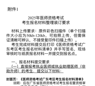 《医师资格考试广东考区考生报名材料清单》1份(手写签名确认)。