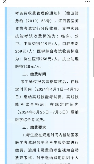 根据江西省卫生健康委及财政厅发布的最新通知,江西本地医师资格考试费用如下: