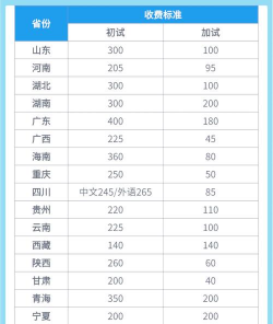- 四川:中文考生240元,外语考生265元,加试考生85元