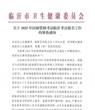 关于2025年医师资格考试临沂考点的相关信息,综合整理如下: