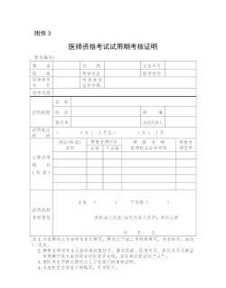 试用期考核证明是参加医师资格考试的重要材料之一,考生需严格按照要求填写,确保材料的真实性和有效性。