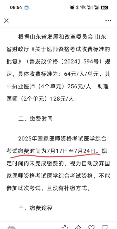 关于山东省医师资格考试费用,根据最新官方信息整理如下: