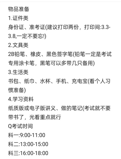以上物品需提前准备齐全,避免因遗漏影响考试。