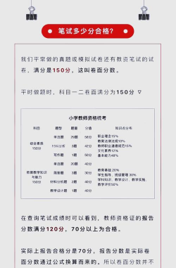 教育部统一规定笔试合格分数线为 70分(即卷面分×0.8≥70),无需再区分150分或120分制