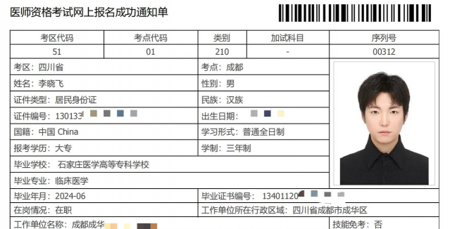 关于医师资格考试报名成功通知单上出现序列号的问题,综合权威信息说明如下: