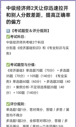 《专业知识和实务》:专业科目,题型为客观题。该科目分为10个专业类别,包括工商管理、农业经济、财政税收、金融、保险、运输经济、人力资源管理、旅游经济、建筑与房地产经济、知识产权等。