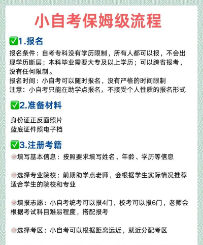 - 小自考采用“统考+校考”模式,需通过所有科目后申请毕业
