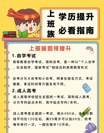 选择合适的学历提升方式:根据个人的学习时间、精力投入、以及职业发展规划,选择最适合自己的学历提升方式。