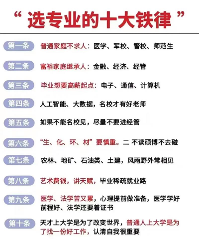 兴趣导向:选择自己感兴趣的专业,这样在学习和工作中会更有动力和热情。兴趣是最好的老师,能够帮助你更好地投入学习,提高学习效果。