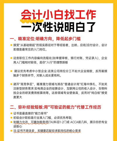 选择适合的岗位 优先考虑中小微企业的出纳、会计助理、税务助理等基础岗位,这类企业更愿意接纳新人并提供学习机会。部分岗位可能要求无经验,但会提供实习或培训。