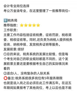- 财会类岗位(如财政、税务、审计部门)通常要求具备会计专业背景或相关证书;