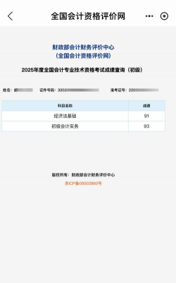 通过初级会计考试(含《经济法基础》和《初级会计实务》两科)后,获得的是 初级会计资格证书,而非带有等级标识的“初级会计师”职称。