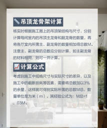 天棚工程量主要根据设计图纸和施工方案进行计算,常见的计算项目包括:
