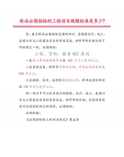二、具体金额标准(依据《必须招标的工程项目规定》)