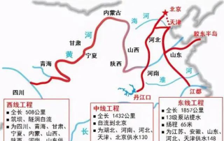 | 调水路线 | 从江苏扬州至北京天津 | 从湖北丹江口至北京天津 | 从四川、青海等地至西北 |